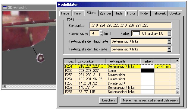 Das Spornrad ist sehr klein. Es lohnt sich nicht, hier einen so komplexen Körper wie das Rad eines Hauptfahrwerksbeines zu verwenden. Wir definieren es besser als Fläche mit 8 Eckpunkten und einer Dicke von 4 Millimetern: