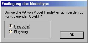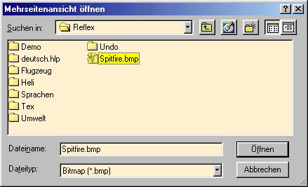 Für die Spitfire wählen Sie Flugzeug und beenden Sie den Dialog mit OK. Das neue Projekt muß nun noch gespeichert werden. Wählen Sie dazu Datei, Projekt speichern unter...